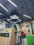Уютно комфортно находиться в помещении Брали маленькую пиццу две шаурмы нагетсы картошку фри принесли за семь минут персонал вежливый Но напитки дорогие а со своими нельзя. 4⭐