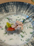Были недавно семьёй. В целом неплохо. Том ям жене очень понравился. Младшая брала стейк, он был из двух кусков( соединен волокнами) , прожарка оказалась разной:). Брал помидоры с буратой, на сколько я знаю это в мешочке, принесли без мешочка, просто содержание мешочка :). Народу было мало, воскресенье после обеда. Официантка была неопытная и администратор все валил на неё, хотя при такой маленькой посадке могла бы контролировать, а не говорить, что мало опыта! В целом понравилось, десерт зашел, твердая 4. На четверых счет на 6600₽. -700₽ алкоголь.