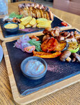 Приятное и довольно атмосферное место. Ароматы с кухни дополняют эту атмосферу. Довольно уютно и компактно по расположению столиков. Быстро принимают заказ и довольно быстро подают уже готовые блюда. Шашлык из шеи, овощи на гриле и картошка по деревенски были приготовлены просто замечательно и в меру по специям. Ребра свиные, в силу сложности выбора и особенностей приготовления были слегка жирноваты, так что второй раз я бы их не заказал. В остальном, все более чем приятно и достойно. Место для посещения рекомендую.