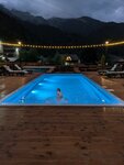 Просто великолепное место! Остались только положительные эмоции. Но давайте по порядку. 1) уютные, комфортные номера (по крайней мере тот, что мы бронировали). В одной комнате полы с подогревом, в другой обогреватель, так что если холодно, то можно согреться. Кровать удобная. Есть чайник, холодильник. 2) территория ухоженная. Открывается красивый вид на горы! Много беседок. Также по территории протекает ручей (речушка?), и очень приятно журчит, под этот звук, здорово засыпается. Через ручейки перекинуты милые мостики и там плавает рыба:) Также есть мангальная зона, и зона где можно разжечь костер и посидеть возле него. Удачное расположение, находится не в самом центре поселка из-за чего там тихо и спокойно, но тем не менее до центра мин 12-15 пешком. 3) Бассейн с подогревом! Это просто кайф! На улице +5, а ты сидишь в бассейне! Вечером всё красиво подсвечивается! Бассейн чистый. 4) Баня! Заказывали на два часа. Выше всяких похвал! 5) Чан! Также брали на два часа. В чан добавляют еловые ветки и ромашки. 6) Отдельное спасибо работникам Фатиме и Мурату! Фатима - замечательная, радушная, добрая! Благодаря ей чувствовали себя как дома! Однозначно рекомендую! Не хотелось уезжать