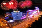 Многофункциональный большой домище с несколькими бассейнами, банями, каруселями, спортзалами, магазинами, кафешками, боулингом, ледовым катком и кинозалами. Шумно как и во всех центрах.