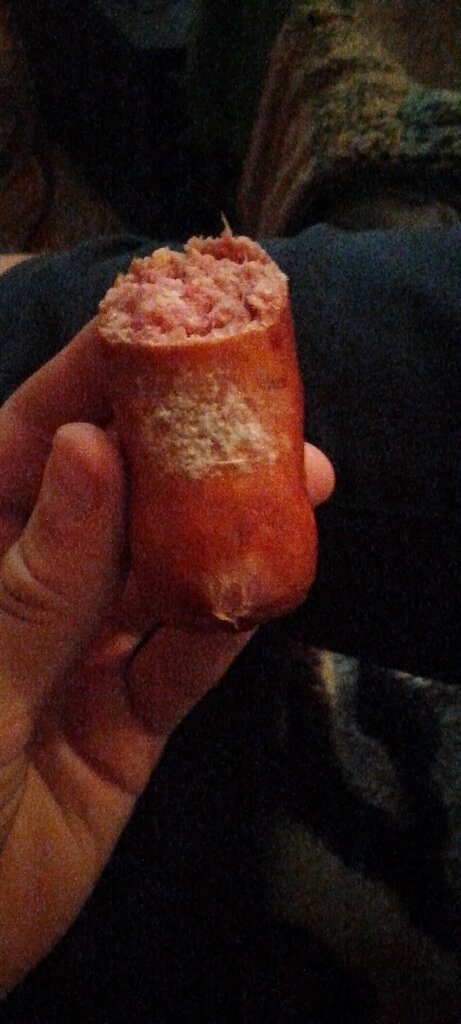 I bought sausages today at the groshik store in Narovlya, I opened it and there's mold on it, it's very bad for people buying goods in it