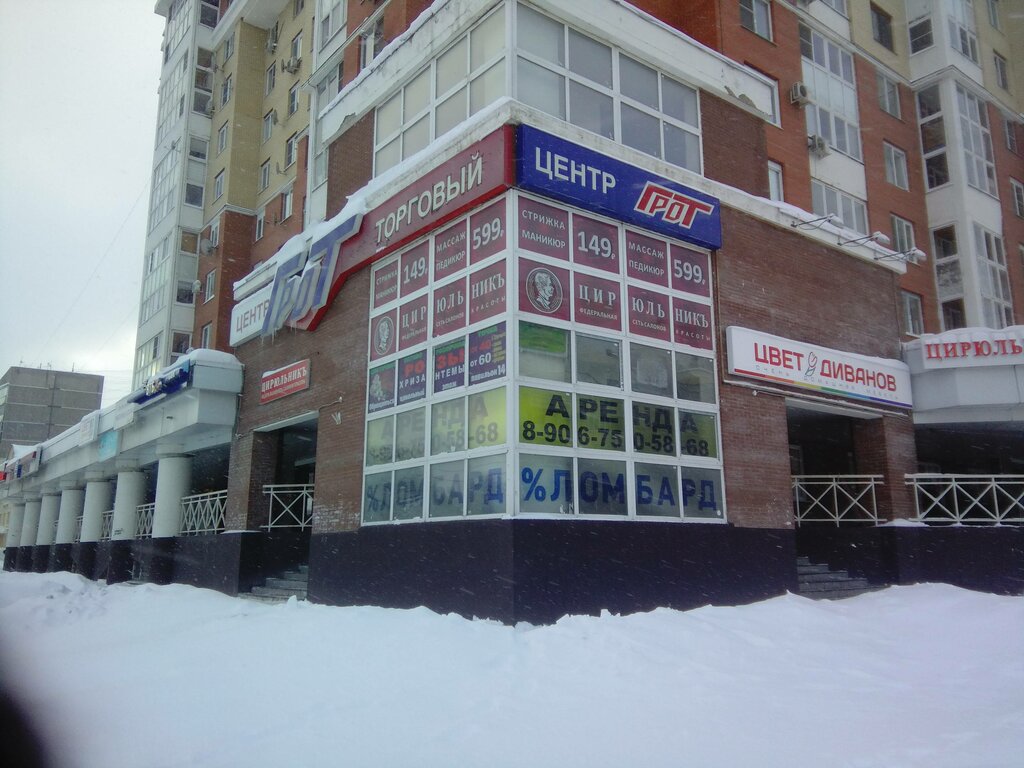На торговый центр это вряд ли похоже, а вот на разного рода офисы больше. Скорее центр оказания услуг. Здесь есть ремонт мягкой мебели, обслуживание кассового оборудования, прачечная, семена, дайвинг, парикмахерская.