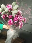 Замечательный магазин цветов, очень милая девушка, собрала букет с нашими дополнениями в виде божьих коровок и гирлянды. Очень рекомендую. Теперь за цветами только сюда (сердечко) UPD Люди в лифте, на улице и друзья в ресторане, - все спросили, где купить такой букет) Но я честно призналась, что это эксклюзив) И ещё. Заезжала к друзьям 10 дней спустя, букет в отличном состоянии (губку поливают).
