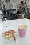 We go to this cafe with my daughter, I like the place, it's cozy, the coffee is good, the pies are delicious, there are lunches (second course) in lunch boxes without soups, they are also delicious, there is a casserole, baby pies. The atmosphere is warm, cozy, pleasant music. There is also a bonus card that is constantly issued, it is also very motivating to go there.