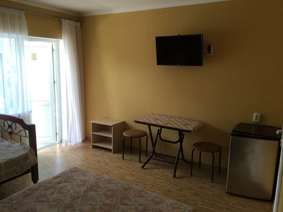 Не советую ехать в этот Гостевой дом однозначно. Из небольших плюсов могу сказать, наверное, только достаточно близкое расположение к морю. Совсем рядом пляж возле горы Алчак-Кая. Но он достаточно каменистый, с неудобным входом. Поэтому мы ходили на центральный пляж, чуть дальше. Всё, больше ничего. Первые этажи(а возможно и второй, и третий) с жуткой чёрной плесенью на стене. Они об этом знают, но ничего не делают, да и не смогут. Мне кажется, что неправильно установлен душ. Он отделен от комнаты пластиковой перегородкой с прозрачными вставками, типа балконной двери. Душевая зона должна быть ограничена капитальным стенами и плиткой. А так вода всё равно попадает в стены, отсюда и плесень, которая просто кишит там. Того гляди пойдёт и выгонит вас из вашего номера. Судя по фото на сайте, они её скрывают, ставя шкафы на это место. Но обратите внимание. Видимо перед тем, как турагенты ездят- смотрят гостиницы, они от неё избавляются. А потом просто забивают на это. В душевой нет полок совсем, что крайне неудобно. На кране висит корзинка пластиковая, куда можно поставить 2-3 бутыли с шампунем и тому подобным. Но этого крайне мало. Сами краны все в налете. На первом этаже горячая вода практически всегда. Один раз её не было, но быстро нагревается, минут за 20. Верхние этажи получают воду с крыши от солнечных батарей. Там после обеда воды не бывает. Это рассказала одна из отдыхающих там. Они приходили с моря часов в 12, купались. А вечером с моря приходили - уже не купались, так как воды не было. На сайте у них указано наличие столовой. Уберите эту информацию, не вводите людей в заблуждение. Её там нет. Есть кухня (общая с хозяевами) с минимальным набором посуды. При необходимости её, конечно, хватит. Но она какая-то в полу убитом состоянии. Столовые есть рядом, по дороге на пляж-цены и подороже, и подешевле- на любой вкус. Есть очень красивая и вкусная сеть столовых Ho. RE. Сa.(это подороже). Там достаточно большой выбор блюд, большое, очень красивое помещение ресторанного плана. Работают по принципу - набрали еды, оплатили всё на кассе. Там все девочки и мальчики одеты в чёрно-белое, очень уважительные, быстро обслуживают, убирают со столов. В сторону моря есть много столовых, где подешевле, но тоже вкусно. Вообщем можно выбрать что душе и кошельку угодно. У нас номер был с вентилятором, "благодаря " турагенту, который очень "хорошо" слышит требования к номеру. Но это другая тема. Дали нам вентилятор с невозможным слоем пыли и сверху защитной сетки, и внутри на самих лопастях. Боялась его включать. Уважаемые хозяева, следите за вентиляторами тоже. Их надо протирать и чистить самим. Я протерла сверху, насколько это возможно. Но лопасти остались очень грязные. Ещё тоже неудобство. Наш номер, вроде как, расчитан даже на 3х человек. Жили мы вдвоём. Но одна тумбочка. Этого крайне мало. Хотя бы две. При заселении не всем сообщают всю необходимую информацию. Приходится потом доходить опытным путём. Как, например, код на выходных воротах. Двери открыты днём. На ночь их закрывают(что и правильно). Но нам не сказали код. Мы пришли к закрытой двери. Спасибо из соседних номеров кто-то пришёл, зашли вместе и от него узнали код. Стоянка на территории примерно для 6 машин. Имейте ввиду, когда едете на авто. Либо будете стоять за воротами. Но дороги там достаточно узкие. Ну и маневрировать по террит