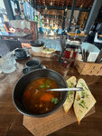 Увидели ресторан и решили зайти пообедать. И не зря! Впечатления от ресторана остались самые наилучшие, было прекрасно все- начиная от обслуживания и скорости подачи блюд, и заканчивая, конечно же, вкусом самих блюд. Брали бозбаш, хачапури лодочку и хинкали- даже не могу выделить какое из блюд было наиболее вкусным. Первое было свежее, вкуснейший бульон, достаточно овощей и мяса. Хачапури и хинкали также на высоте- нежнейшее тесто, отличные по размеру и очень нежная сочная начинка. Блюда подавали очень быстро одно за другим, также официант предложил попробовать авторский чай со смородиной- и там действительно было много ягод и насыщенный вкус. Также хочется отметить интерьер заведения- я просто засмотрелась на разнообразные светильники по периметру внутри. Вообще в интерьере множество интересных деталей, хочется любоваться и не уходить)) От души рекомендую! Впечатления об отдыхе останутся самыми позитивными в том числе и благодаря Вашему ресторану