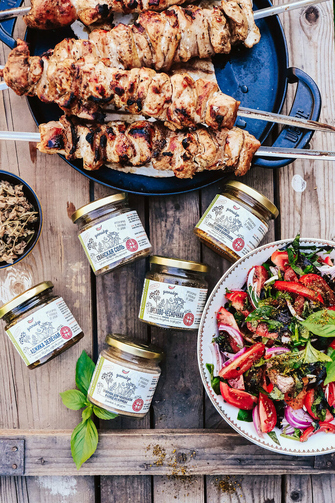Выращено и собрано в Сванетии. состав: соль поваренная пищевая, пажитника семена, гицрули, перец молотый красный, кинза сушеная молотая, семена укропа, шафран, чеснок вес: 120-400гр область применения: для заправки, для маринада, для бутербродов, ...