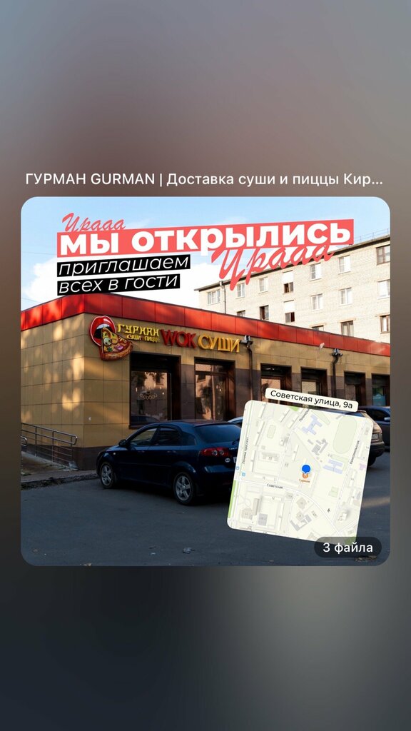 Часто заказываем доставку, решили с женой прогуляться и зашли в Гурман. Мы пробовали суши во многих ресторанах и доставках и не только в Киришах. Но в этот раз ребята удивили: подача была очень красивой, брали набор Гурман, он оказался очень вкусным. Советуем.