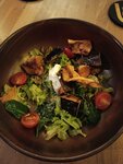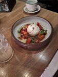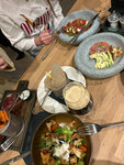были 4.01.26 по интерьеру красиво, зал украшен в зале была плотная посадка на всех мест в гардеробе не хватила огорчило, что на входе не было хостес, стоишь и не понимаешь тебе в зал проходит или ждать, и все что-то бегают, но мимо тебя, никто внимания не обращает, странно это выглядит по еде брала лимонад с крыжовником - неплохой. стейк из свинины с овощами тоже неплохо, но соус невкусный. не понравилась подача на деревянной доске, по мне так такую посуду сложно промыть и ухаживать, выглядит негигиенично совсем не понравился запеченный баклажан аля пармеджано - он совсем безвкусный, просто ешь неопрятно что, крайне разочарована, учитывая что подобные блюда я очень люблю и часто их заказываю в других заведениях в целом по еде на 3. пока сюда больше не планирую возвращаться