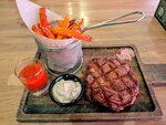 Неплохое место. Расположение очень удобное, красиво оформлен вход, интересная подача блюд. Официанты внимательные. Из минусов: неодновременная подача блюд - кто-то ждёт своё, а кто-то сидит над принесённым блюдом и ждёт остальных. Стейки и филе миньон мягкие, прожарка правильная, но мясо пресное. После десерта остался привкус пальмового масла(