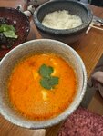 Продолжаю исследовать район «Патриков» в гастрономическом направлении. Этот совсем небольшой ресторанчик- кафе с невыразительным интерьером вызвал у меня положительные эмоции - почти все блюда были вкусными , подача очень быстрой и персонал очень любезен . Ценник средний для этой локации . Обед для двоих без спиртного - 6180 руб .Как комплимент нам подали каждому маленькие порции с корейской морковкой и маринованной капустой. Мы попробовали : салат из древесных грибов—450 руб.; Севиче из тунца - 1030 руб.( вкусно ) ; Том Ям - 850 руб. ( удивительно маленькая порция супа ) ; филе говядины в соусе чёрный перец - 1430 руб. ( небольшой кусок мяса без гарнира) ; цезарь в азиатском стиле - 810 руб. ( много сухарей и совсем мало курицы) ; Лапша с креветками -810 руб.( лапша вкусная , но только 4 маленьких креветочки ) ; зелёный чай 740 руб. С чаем пришлось вступить в дебаты так как изначально нам принесли чайник с желтоватой чуть тёплой жидкостью . Я попросила заварить чай классическим способом : чай + кипяток.
