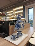 Уютная атмосфера, приятный персонал. Аккуратно и чисто внутри. Подают десерты на гжельской посуде. Рядом есть туалет, можно помыть руки. Заходили с ребеноком посидеть в кафе после прогулки в парке. Аромат кофе и спокойная обстановка улучшают настроение. Можно сидеть и любоваться красивыми изделиями в гжельском магазине через стекло витрин.