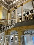 The guard speaks Russian. There are a lot of clothes, several floors, and the ceiling near the grand staircase is incredible