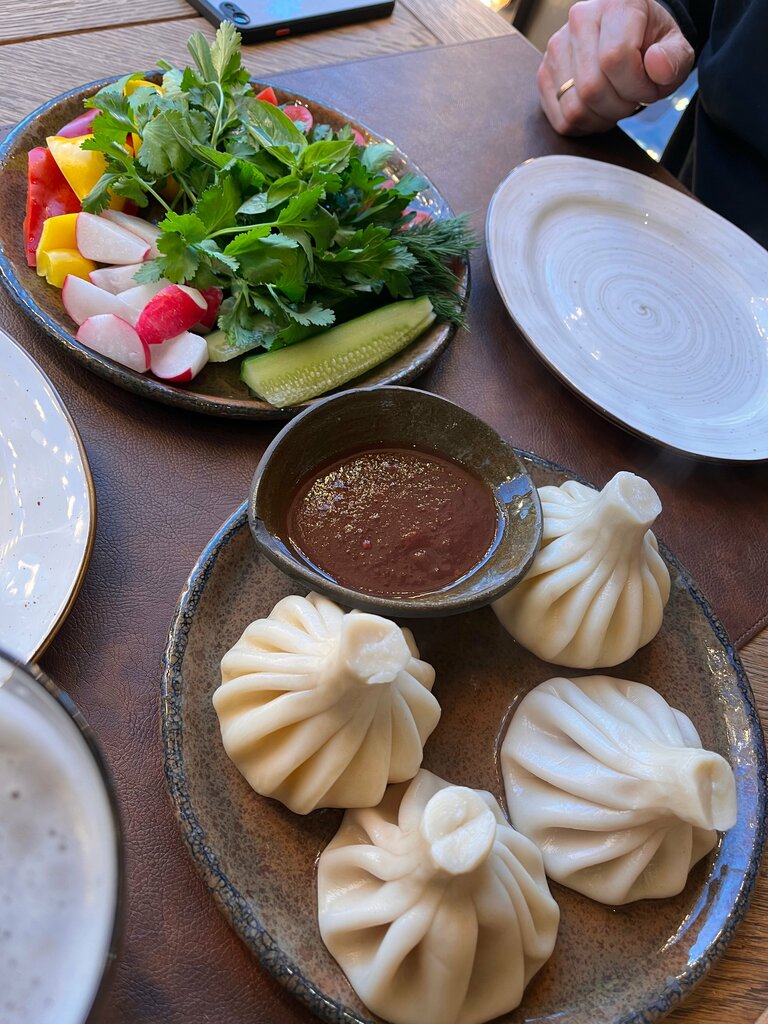 Чудное место, очень приятная обстановка, тихая музыка, чистые столики с приятными салфетками. Вас встретит улыбчивый персонал. Меню, конечно, очень объемное, но когда знаешь, что хочешь, то проблем найти позицию в меню нет. Заказывала хинкали, ну куда ж без них в грузинском ресторане, приготовили быстро, но не мгновенно, сами хинкали - пальчики оближешь. Еще брали кебаб и овощи гриль, они тоже вполне достойные! Атмосфера была более чем приятная. Никакой суеты, громких звуков. И расположение ресторана очень удобное, своя маленькая парковочке. Так что если едете в сторону Ладоги и по пути проголодались, то рекомендую завернуть.