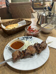 Вкусно, сочно, особенно понравился сочный Люля кебаб. Демократичные цены (Шашлык из баранины 3 шампура, Люля кебаб 3 шампура, салат овощной 1порц, лепёшек три, чай чайничек, три соуса, и средняя пиалка с вкусным белым густым соусом с зеленью 2400р. На троих) Жарят довольно быстро. Музыки не хватает, и диванчиков побольше, а так норм ;-)