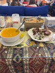We were taken to this institution as part of the Gobustan tour./Absheron for lunch. The complex included lentil soup, Uzbek pilaf and compote. Additionally, lavash and vegetables were served. It was all very tasty. The service is good and fast, the staff is polite. Mostly there are men in the establishment. They had menus on their tables, and the prices were generally very affordable. We bought sweets from them: Turkish and Baku baklava. Baklava is fresh and incredibly delicious. They paid 7 manats for two portions of each baklava.