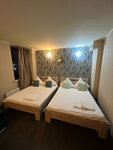 Были с женой в Москве по делам, решили остановиться в этом отеле на ночь, ожидали конечно более лучшего, да постельное белье чистое, кровать мягкая, спать было хорошо, это наверное единственное что было из плюсов, ну wi-fi ещё ловил хорошо, а вот недостатки, то что в душе еле помылись, вода холодная, что бежала горячая, нужно долго ждать, очень шумно круглосуточно работает вентиляция, ночью не даёт спать временами, холодно очень, отопление отключено, запах не приятный тоже присутствовал, двери в душевую и в шкаф плохо сделаны и закрываются плохо, телевизор плохо работал, постоянно каналы зависали и мало каналов для Москвы, всего 20 штук, поэтому в следующий раз, когда будем в Москве, вряд ли будем там останавливаться.