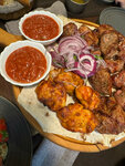 Фарш куриный на мангале. Подается с луком и зернышками граната