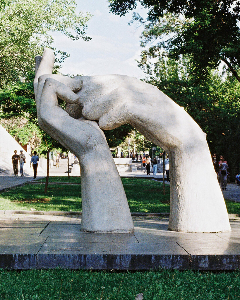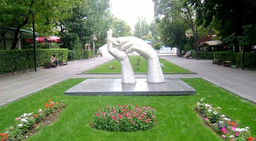 The official name is "Hands of Friendship". It was established in 1965. It is included in the list of immovable historical and cultural monuments of the Kentron administrative division of Yerevan. The sculptors are Hilma Madera and Ara Harutyunyan. The sculpture is a symbol of the brotherhood of the capital Yerevan and the Italian city of Carrara.