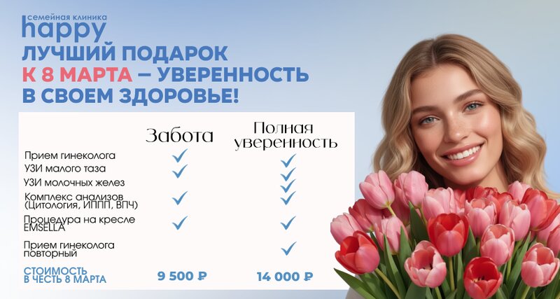🌷 В клинике Happy стартовала программа женского здоровья к 8 Марта В преддверии праздника мы запустили специальные комплексные программы о...