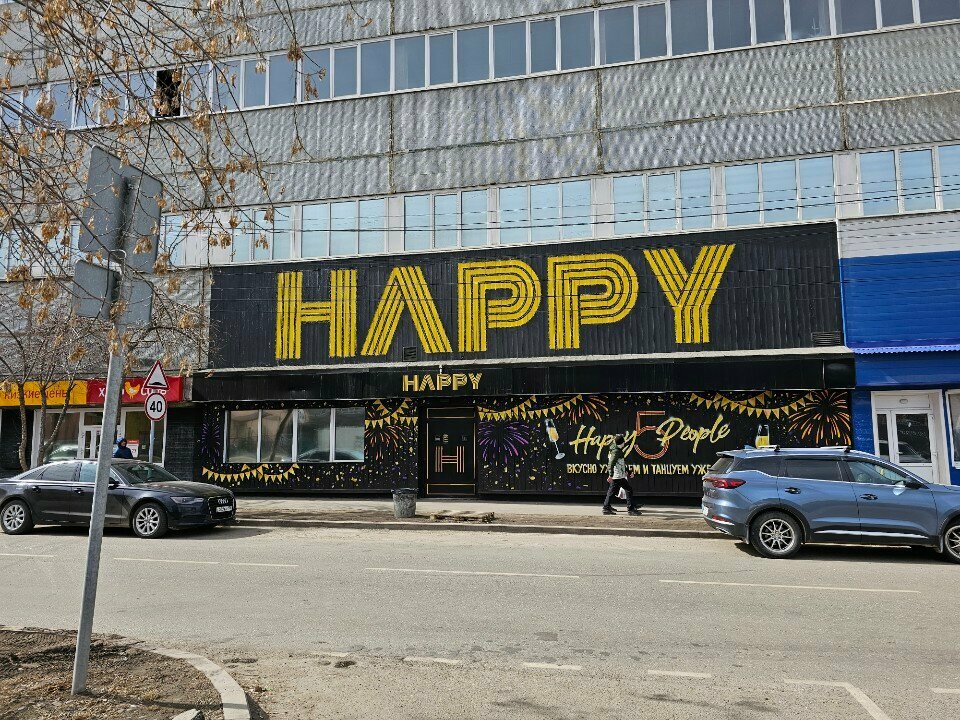 Понравился и шумный зал и зал караоке, и квиз, отличная кухня - брали шашлыки и пиццу с горгонзолой необычной формы, сняла две звёзды за то, что нет доставки, заказали пиццу по телефону, оплату требуют вперед, (пока не оплатишь, готовить не начинают!), приехали на такси за пиццей, пицца не готова, ждали ещё полчаса ( пришлось раздеваться в гардеробе и спускаться в зал), забрали пиццу в крайне неудобном пакете, в котором пицца свободно перемещалась и готовила перевернуться, положенные в этот "фирменный" дырявый пакет салфетки просто выпали, пока оделись в гардеробе, пока дождались такси, пока доехали, пицца остыла, дома открыли холодную, настроение имениннику, который обожал эту пиццу, подпортили, уважаемые Хэппи,может, пора начать думать о клиентах и дорасти наконец, до доставки???