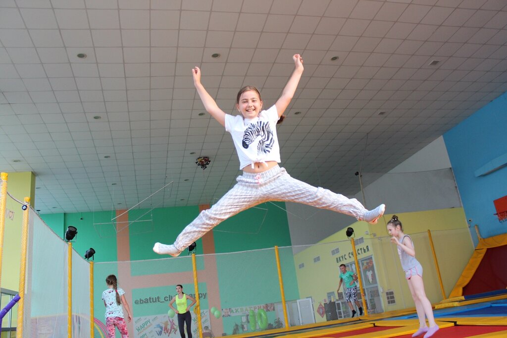 Отличный батутный клуб, сыну 3 года, тренер сразу же показал ему все разминочные упражнения и присматривал за ним, для взрослых там же есть недорогое кафе, где готовят свежие блюда,от туда можно наблюдать за ребенком, для совсем маленьких есть отдельный детский уголок! Рекомендую, для отдыха самое то!