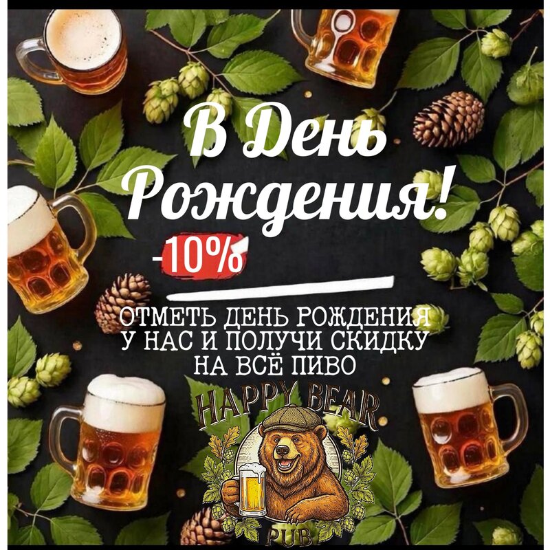 Посетили данное заведение. Были компанией. Разнообразие алкоголя по оптимальной цене. Вспоминается отрывок из Библии : "И вино, которое веселит сердце человека", главное, чтобы умеренно. Атмосфера уютная, располагающая. Её раскрывают и множество настольных игр, которые заготовлены посетителям. Персонал гостеприимный, вежливый, остроумный. Поддержит любого собеседника. Предлагаю убедиться в этом и вам. Подписывайтесь на канал, чтобы не пропустить клубных мероприятий: https://t.me/happybearbar