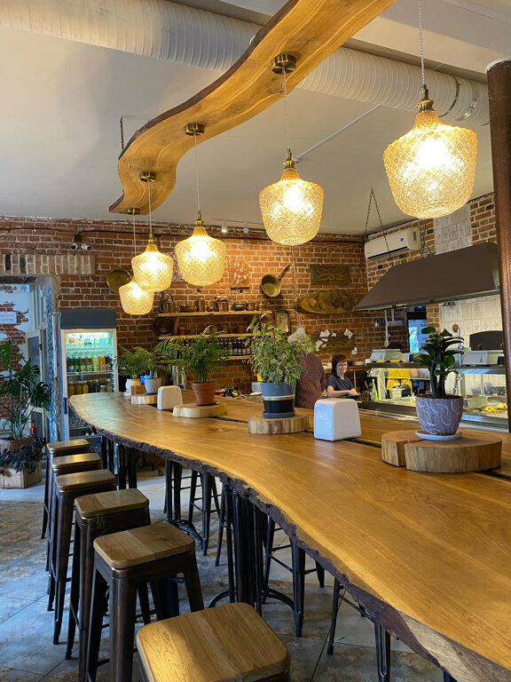 Были здесь три раза и все три раза выходили отсюда очень довольными и сытыми. Интересный интерьер, за кажущейся простотой виден большой труд и самое главное - чувство вкуса (только одна электропроводка вызывает у меня восторг). Ассортимент еды обширный, супы трех видов, мы застали солянку, харчо и куриный суп с домашней лапшой (плоская, не разваренная - очень вкусная!) Горячее: много как гарниров, так и мясных/куриных/рыбных блюд. Большой выбор выпечки - пирожки, хачапури и мини пиццы всего много. Чай - много разнообразных видов. Кофе в кофемашине - мега вкусный с плотной пеной и 4 сиропа на выбор - лавандовый, кленовый сироп, карамель и ваниль. В кафе чисто во всех зонах, за деревянным столом очень приятно сидеть. Идея кафе самообслуживания здесь реализована полностью, видела здесь много семей с детьми. Если меня спросят где вкусно и недорого поесть в Ростове, с удовольствием порекомендую именно Харчевню