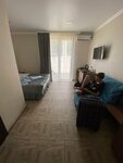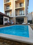 Отель очень уютный! Были здесь первый раз, всё понравилось. С верхних этажей видно море. Расположение отеля удобное: рядом продуктовые магазины, столовые, рынки, до пляжа не далеко и можно дойти по тихой улице, до аквапарка тоже недалеко. Рядом автобусные остановки со всеми основными маршрутами. Здание новое, территория отеля чистая, много цветов. Есть свой бассейн с двумя уровнями глубин, большая кухня, холодильники, весь набор кухонных принадлежностей, шашлычная зона. Даже есть собака и канарейка, что тоже понравилось. Номера чистые и приятные, дизайн интерьера современный. У нас была удобная большая кровать, и дополнительное спальное место в виде кресла, которое превращалось в еще одну полноценную кровать. Постельное белье, полотенца, всё чистое. В номере есть телевизор, холодильник, чайник. Всегда есть горячая и холодная вода. Хозяева отеля вежливые и отзывчивые. Впечатления остались положительные.