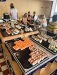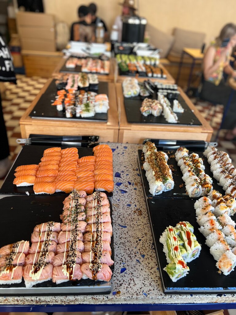 The last time the price (March 2020) on a working day was ~ 13€, on weekends and in the evening about 18€. You pay at the entrance and eat as much as you want :) the fish is fresh, the assortment is very large, the desserts are pleasant. In general, do not pass by, one of the best sushi buffets