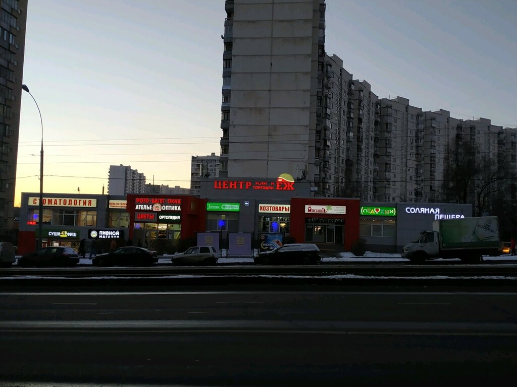 В таком маленьком ТЦ собрали всё необходимое. Продукты, магазин алкоголя, место где вкусно и комфортно можно посидеть с компанией и попить пива, посмотреть футбол,рыбка вкусная там, разные маркетплейсы Озон, Валдбериз, Яндекс, Алиэкспресс, аптека, оптика и медцентр , услуги фото и багетная мастерская, химчистка, а ещё хозяйственный в котором всё есть, пункт приёма заказов на изготовление окон, сетки москитные делают .Вроде ничего не забыл. Удачное время работы с 9 утра до 9вечера