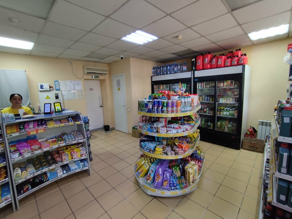 A small gas station. There is a minimal assortment for visitors: drinks, snacks, fast food, non-grocery group of goods, auto supplies. Payment acceptance is QR KAPSI and HALYK. We were served politely.