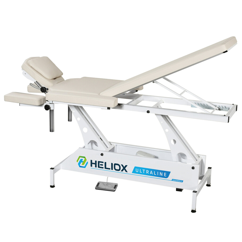 • Электроприводом, плавно регулирующим высоту ложа стола. • Механически-изменяемым углом наклона спинной секции ложа. • Бесступенчато регулируемыми передними подлокотниками. • Боковыми поддержками для рук, с механизмом фиксации. • Регулировкой угла н