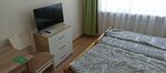 У нас в номере на 3 человека была даже маленькая кухня со всей посудой. Второй номер, который мы арендовали кухни не имел. В номерах нет шкафов для одежды, но есть вешалки. Ещё очень не хватало тапочек, так как на полах плитка, ногам холодно. Везде было очень чисто. Постельное белье и полотенца аж сияют белизной 👍 Отель находится в спальном районе, поэтому там тихо. Рядом есть аптека и маркет. Самое необходимое можно там приобрести. Есть место для автомобиля.