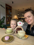Заказали три кофе латте, капучино и после раф , кофе оочень вкусный , даже оценила маленькая девочка.))Десерт тоже понравился, эклер зачетный , дочь сказала:ничего в жизни вкуснее не пробовала ☺️! Место уютное , хозяюшка милая приветливая , на все наши вопросики ответила с добрым сердцем . Удобный подъезд, парковка свободна .