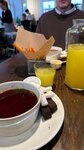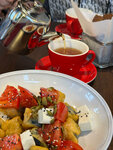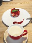 По приезду в город сразу зашли сюда позавтракать. Цены скажу сразу – высокие. Еда вкусная. Официанты хитрые, за что чаевые не получили. Опишу ниже что и как. Мы заказывали: - английский завтрак - хорошее сытное блюдо, - хашбраун с сёмгой и яйцом-пашот - цена в 890₽ завышена, т.к. порция небольшая и ею не наедаешься, - сырники - вкусные, но вот здесь момент. Они подаются уже с ягодами и сметаной. Официант при заказе задала интересный вопрос "Варенье какое к ним хотите?" Ну если ты сказала А, говори и честное Б - варенье стОит отдельно 100₽. Решила схитрить, но не удалось. Меню-то я изучила, и знаю, что за варенье нужно заплатить отдельно. Не нужно так делать, гость чувствует себя обманутым. Дальше, в дорожку мы захотели взять какао с собой. У кассы бумажное меню, где возле какао указана цена 270₽. Девушка пробивает мне какао за 290₽. Я уточняю цену, на что получаю ответ "Какао уже по другой цене, не успели исправить в меню." Итог. В целом, заведение приятное, но хотелось бы более прозрачного подхода к ценообразованию и честного информирования гостей. Потому что неприятный осадок остался – не просто из-за переплаты, а из-за того, что с нами обошлись не совсем честно. Именно это испортило общее впечатление от визита.