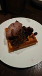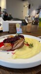 Просто нереально вкусные кортофельные вафли с мармеладным луком и куриным парфе. Проезжал мимо, зашли покушать рядом со станцией электрозарядки. И теперь каждый раз когда заряжаюсь, захожу сюда ради этого блюда