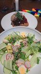 Кафе на втором этаже одного из самых популярных зданий в городе (расположено 4 заведений: музыкальный клуб, кофейня и два кафе). Достаточно большой и просторный зал с приятным дизайном. Место весьма популярное, поэтому в пиковые часы может быть сложно с посадкой. Персонал приятный, доброжелательный и внимательный. Кухня преимущественно европейская и немного русская. Блюда средне-небольшие с обычной подачей, по вкусу сбалансировано с четким вкусом основных ингредиентов. Несколько комментариев по конкретным блюдам: перепел и батат фри были немного суховаты, пельмени отличные с насыщенным вкусом и большим количеством начинки, зеленый салат - приятный и свежий, стОит брать корзинку с хлебом - теплый, свежий с маслом. Неплохой выбор пива, но только бутылочное. Резюме: хорошее, приятное кофе в центре города с хорошей локацией, совмещающий в себе несколько заведений. Хорошее соотношение цены и качества блюд, но для себя изюминки не нашли.