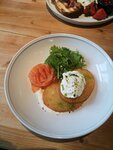 Мне здесь понравилось, зашли на завтрак, было вкусно и сытно. Продукты свежие, кофе вкусный, облепиховый чай очень насыщенный. Наш официант была Анастасия, всё быстро, вежливо, максимально приветливо, захотелось вернуться сюда снова и именно к ней) Английский завтрак понравился мне больше всего, торт с маком очень мягкий и пропитанный кремом. Интерьер современный, стильный, с цветными акцентами. Из окон вид на интересную городскую жизнь, или если повезет, на реку Трубеж. Из минусов - столик шатался, пока мы не подвинули его сами до устойчивого положения, и чистота посуды и приборов не идеальная.