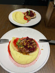 В целом неплохо, но есть нюансы. Лимонад манго -маракуйя очень слабо выраженный, при этом довольно кислотный, учитывая, что просили добавлять минимум кислоты, поэтому не советую. Перепелки неплохие, но невыразительные, немного надо было пропечь побольше. Батат фри хороший. Винегрет со странным привкусом масло или один из ингредиентов, борщ слишком кислотный также. Ребрышки с пюре хорошие. Гарнир брокколи цветная хороший, но очень маленькая порция-2 соцветия цветной капусты, 2 соцветия брокколи, что странно. Гарнир киноа не очень -помимо киноа еще мешанина из моркови и тд, помирод черри хотя и был красный, но кислый и очень твердый, что странно летом. Кофе неплохой. Пирог яблочный понравился: немного теста, много томленых слегка сладких яблок, но был не до конца разморожен. Учитывая, что это Переславль , а не Москва -4