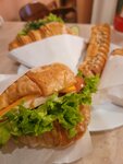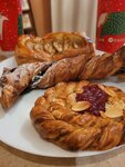 Закупились выпечкой для завтрака. Взяли несколько булочек и круассанов с начинкой. Все было великолепно! Свежайшее, вкуснейшее и по отличной цене! Персонал вежлив, доброжелателен и на позитиве. Внутри глаза разбежались от изобилия восхитительно выглядящей выпечки и десертов.