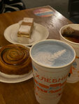 Кофе хороший. Выпечка… на любителя слоенного теста. Чего-то вкусного из дрожжевого теста - минимальное количество. Но что у вас с десертами? Это же какой-то ужас. Торты сухие, начинки ядерные. Крема в наполеоне кот наплакал, из-за этого ощущение что просто кусок сухого коржа жуешь. Рулет вишневый - там что алкоголь в вишню добавили? Что за вкус то ли ликера, то ли перебродившей вишни? Понимаю, что десерты скорее всего у партнеров закупают, но вы хоть пробуйте их, прежде чем людям предлагать….