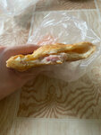 Слойка с ветчиной и сыром за 78₽, начинки фактически нет, только ее видимость. Попались какие то кости с ветками от укропа, которые нельзя прожевать. Жесть… небезопасно есть. Персонал очень грустный