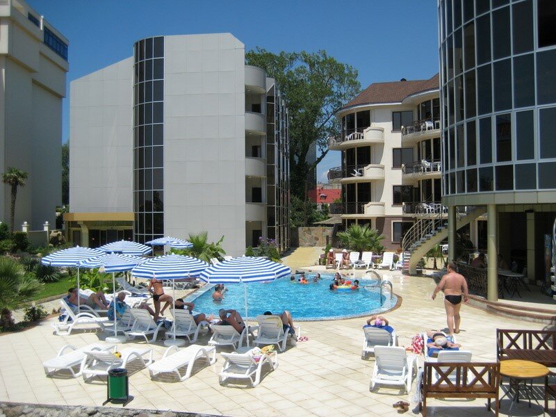 Отдыхали с семьей в сентябре.Я много где отдыхала в России и за границей,сама турагент,поэтому сразу напишу плюсы и минусы 1)Номер большой обычный,все необходимое есть (холодильник,чайник с чашками,стаканы).Большой и жирный минус -уборка,точнее ее отсутствие(раковины и ванну вообще не мыли пока не попросишь,на полу как сок ребенок пролил так почти 2 недели все липкое и было),нужно было просить,чтобы помыли раковину и ванну..хотя за 6000 в сутки мне кажется уборка итак должна входить,а не просить каждый раз).Полотенца грязные в каких-то пятнах -уже давно поменять не мешало бы… 2)Отдельная тема замки-дверь так громыхает ,что слышно как сосед в конце коридора заходит к себе,неудобно если ребенок спит,а ты хочешь выйти из номера то тихо это не получится и зайти тоже 3)Территория компактная зеленая,хороший бассейн с подогревом спасал в плохую погоду 4)детская площадка одно название -старая,сломанная,из крыши торчит саморез,что ребенок чуть не напоролся…если администрация читает отзывы,ну вложитесь уже в площадку,а то прям совсем печально 5)Питание не входит в стоимость,но местная столовая по сравнению со столовыми дальше так себе ….с голоду не дадут умереть,но каждый день одно и тоже и особо выбора нет,порции маленькие за такие деньги(поэтому кто будет отдыхать рекомендую прогуляться в столовую Бристоль -вкусно и демократично) 6) Море находится в 5-7 минутах ходьбы,пляж галька как и везде в Лазаревском,лежак на полдня стоит 700р 7)Александр массажист молодец,его рекомендую,кто хочет поправить спину-старается,молодец! Итог-вернемся ли мы сюда снова?нет…мое мнение цена-качество не соответствует….за такие деньги можно поискать варианты получше