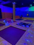 There is a lot of entertainment: inflatable balls (you need to climb into them and play something like sumo), a game of agility, a Velcro costume to jump on the wall, and of course the trampolines themselves. A minus star for outdated repairs and unpleasant-smelling cubes in the pit. In general, everything is fine, there are lockers for things, interesting lighting, entertainment, a room for celebrations, you can buy a drink at the reception.