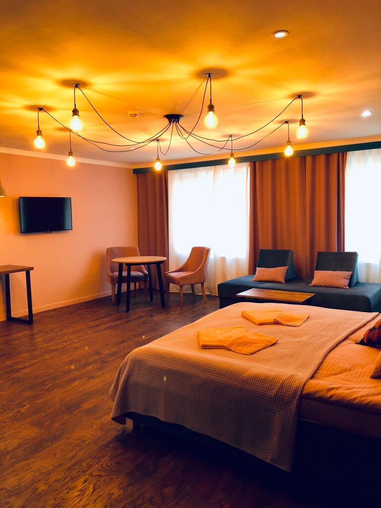 Замечательное место. Прекрасный отзывчивый персонал. Все на высшем уровне. Уютная атмосфера. Огромный аквариум в Фойе . Тишина и еле слышное журчание воды располагает к расслабленому созерцанию и отдыху души и тела. Чистое бельё, евроремонт и прекрасно подобранные по цветовой гамме все предметы интерьера, очень интересные и современные арт картины на стенах номеров говорят о чувстве хорошего вкуса и творческого мышления хозяев гостиничного помещения. Администраторы и горничные очень вежливые приветливые и отзывчивые, выглядят очень презентабельно. Рядом с отелем находится ресторан бар, недалеко есть баня. Доступны все виды транспорта . Очень рекомендую посетить это место.