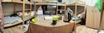 Скажу сразу жить можно .Начну с минусов ... Комнаты маленькие сами по себе , если бы они были рассчитаны ну хотя бы на 4-6 человек вопросов бы не было , но комнаты набиты кроватями до упора . Что бы было понимание мы жили в самай большай комнате , судя по аварийному плану . Комната 4*4 и рассчитана на 10 человек . Даже в тюрьме места больше дают на одного человека. Матрасы тонкие , как видно на фото минимальное количество матрасов что бы хоть как то можно было спать 3 шт. Но мы жили всего 3 человека , был не сезон. Но если приехали кто то еще то матрасы пришлось бы отдать. А расстояние между досками довольно большое и при таких матрасах каждая палка ощущается отчетливо. Вешалок для одежды мало , Есть что то типо шкафов для личных вещей , но влезает туда максимум рюкзак малого размера. Мы жили зимой , котельная шпарит как не в себя , до батарей которые стоят прямо у кровати не дотронутся , как следствие спать и не обжечься просто невозможно , приходиться открывать окно, как следствие сквознять , до простуды лёгких одна ночь . горячая вода в бойлере на нашу комнату повесили 60-80 литров , нам хватало , если подождать час между приемами то нормально, но нас было мало. Если бы была полная загрузка 10 человек , то все , считай что максимум на ноги хватит. Светильник всего один еле светит в комнате полумрак. Стоимость указанная в Я. Картах не соответствует, реальная сумма 700р. с. От 15 дней -600р. с. Теперь о хорошем : чистота поддерживается раз в 2е суток . насекомых не замечено. Комментад или администратор приятная девушка.