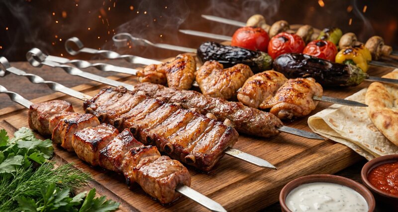 Сочный и ароматный люля-кебаб из смеси свинины и говядины — классика восточной кухни. Благодаря гармоничному сочетанию двух видов мяса блюдо получается нежным, насыщенным и сохраняет сочность при приготовлении на мангале. Лёгкая пряность специй по...