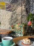 Очень уютное и красивое место: много зелени, красивая мебель и картины. Авторский кофе от бариста - это сплошная радость. Есть варианты с безлактозным молоком.